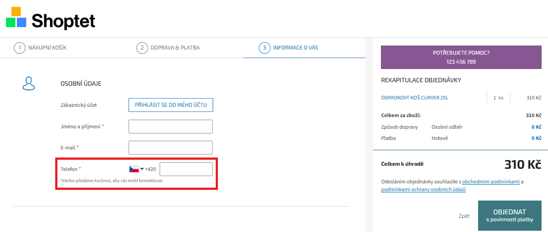 Můžete také např. pod pole s telefonem přidat vysvětlení, proč jej od zákazníka požadujete: