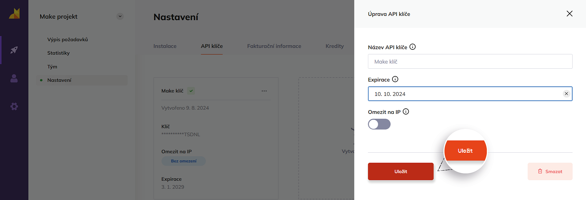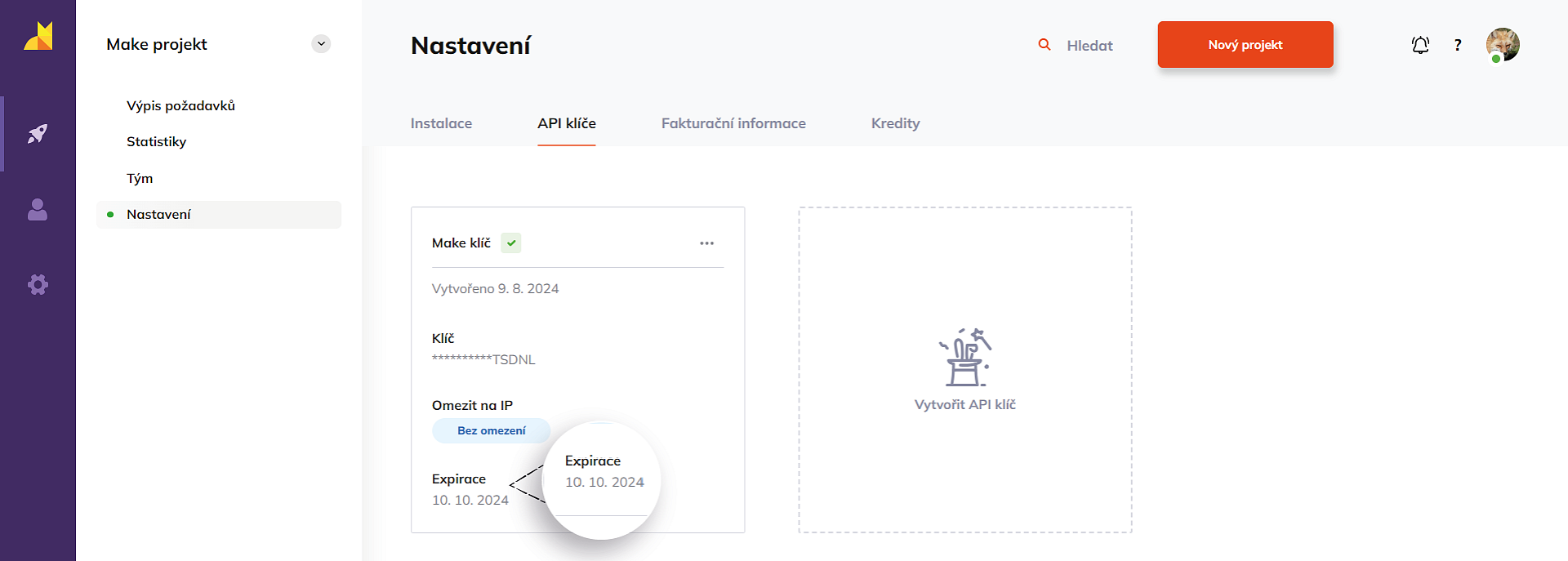 Nastavení expirace API klíče