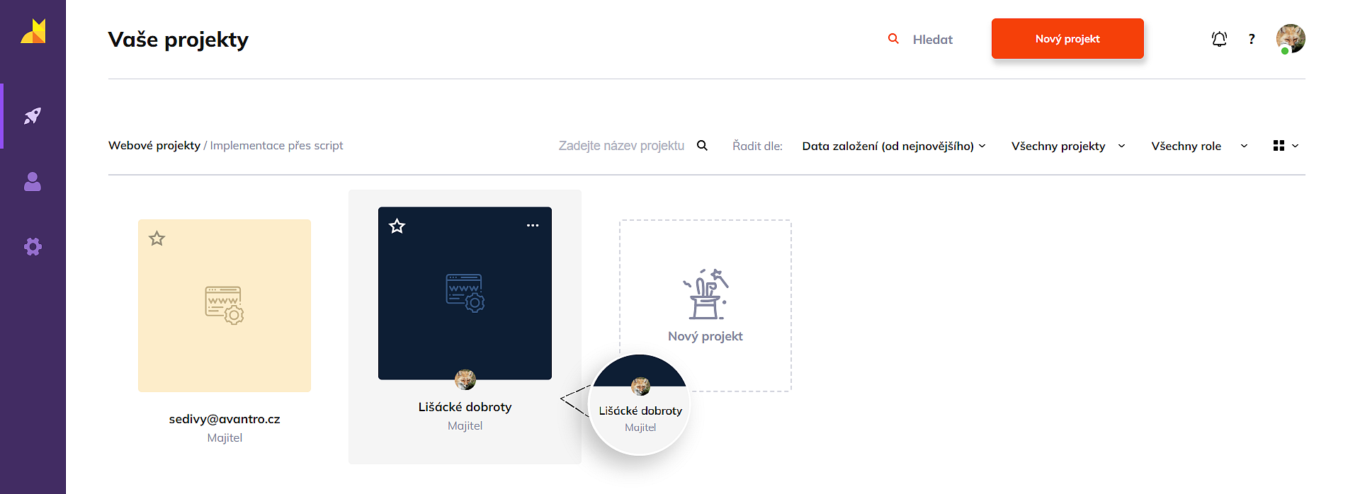 - Klikněte na sekci Projekty (1.).