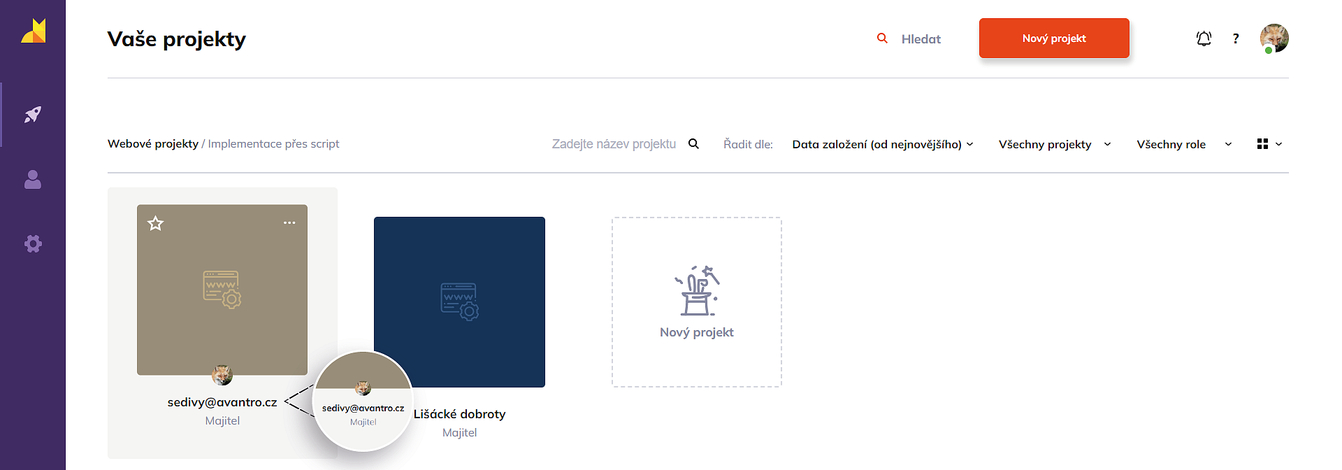 - Filtrace projektů