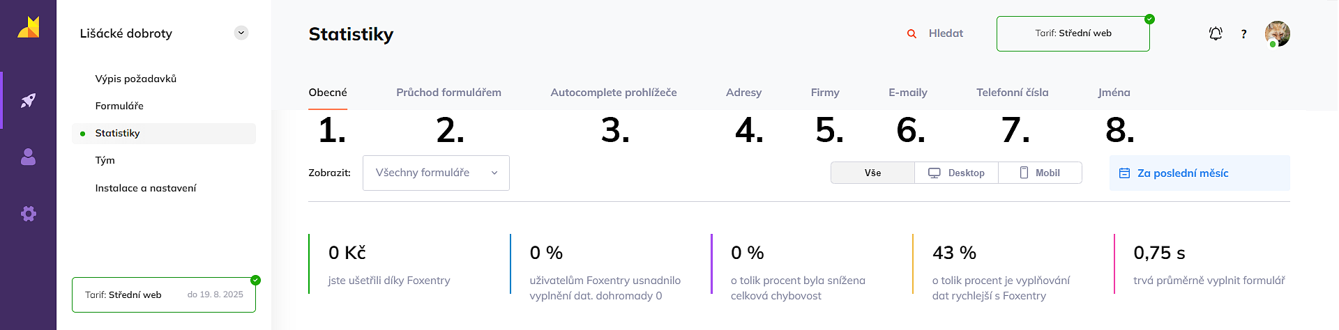 - Podrobnosti ohledně statistik našeptávání a firemních údajů najdete pod záložkou Firmy (5.).