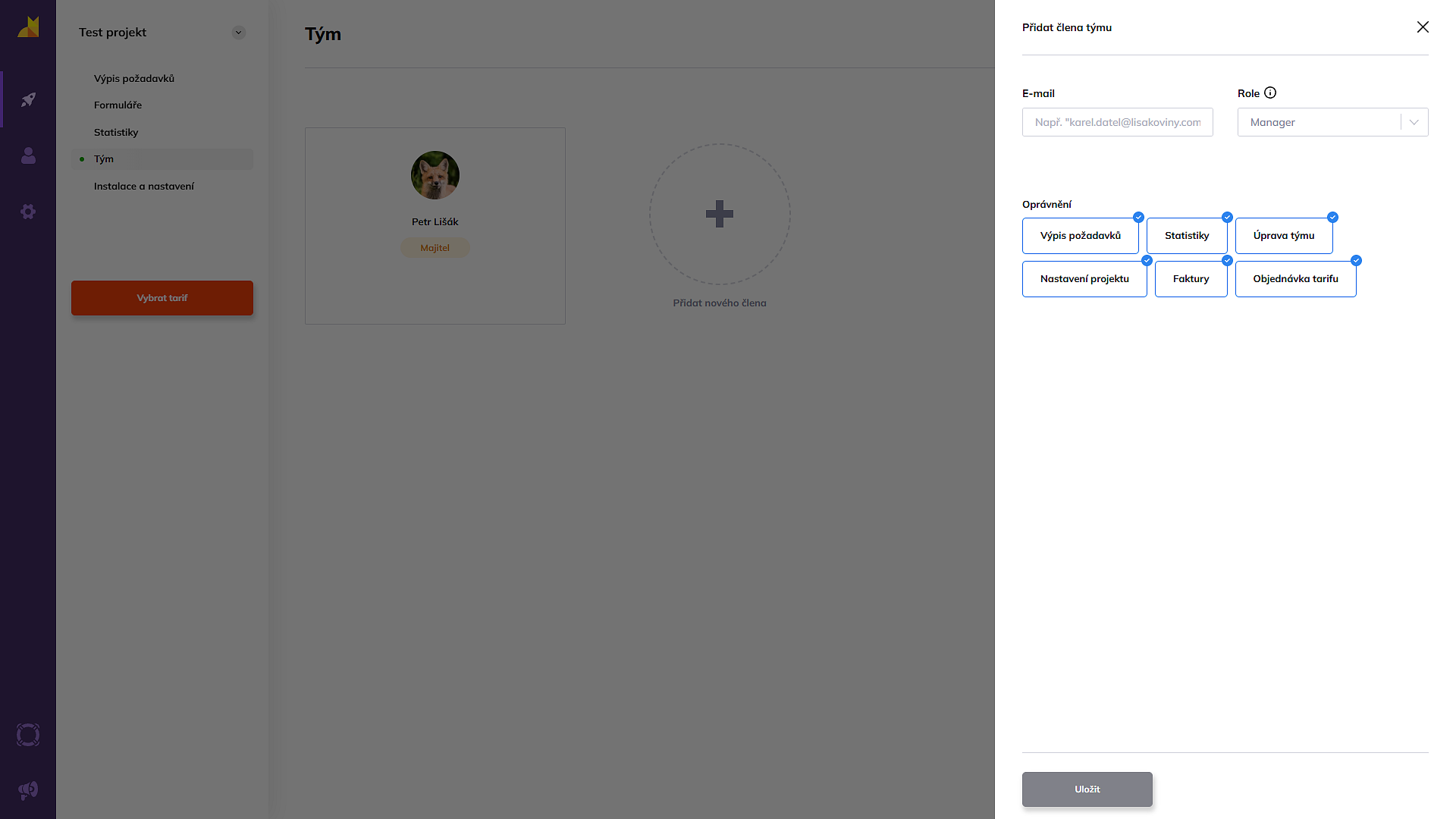 Seznam všech členů týmu můžete kdykoliv spravovat, měnit jejich oprávnění nebo jim přístup k projektu zcela odebrat.